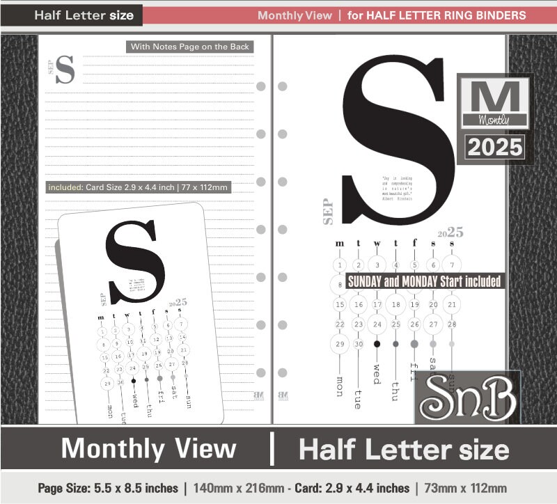 Snb Half Letter Rings Typo Edition Monthly View 2024 / 2025